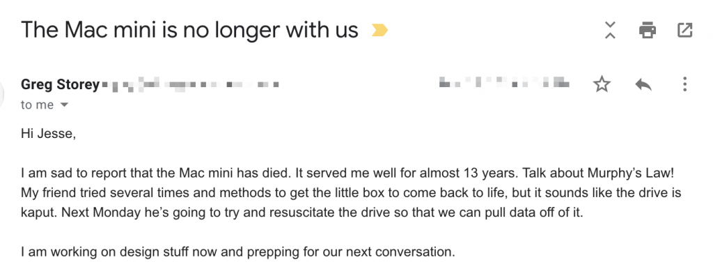 This project took a bit longer than expected, and it wasn’t just because of the unexpected dead Mac. Some of the things that made this take a bit longer: