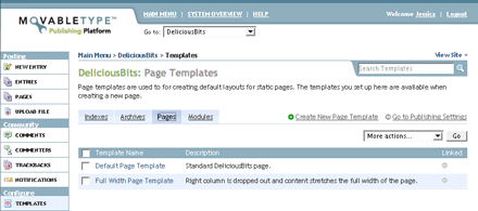 A few weeks ago, during one of our ProNet phone calls when Tim brought up the fact that creating static pages still requires alot of hoop-jumping, I started thinking about a way to implement default page templates that would allow easy management of pages via the MT interface but separate from templates and entries.